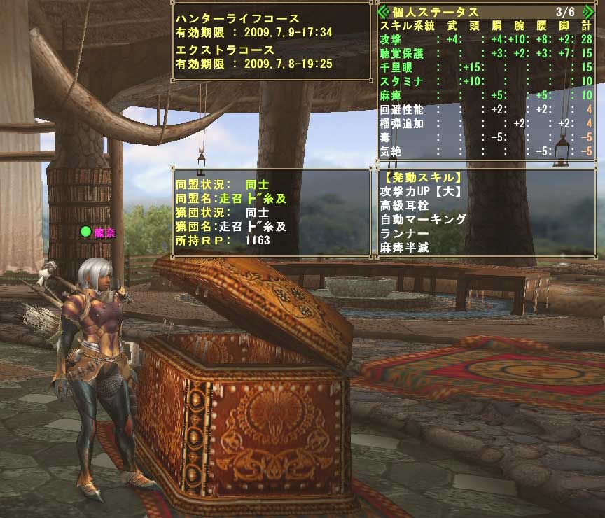 攻撃力UP【大】,高級耳栓,自動マーキング,麻痺半減,回避性能+1,ランナー
