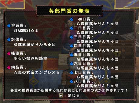 まだ上位入魂猟団発表なっていないので詳しい内訳はわかりませんが