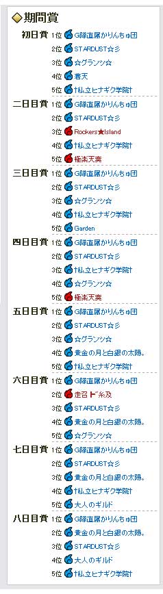 六日目賞2位を頂きましたが、蒼組の入魂数が予想以上に少なく